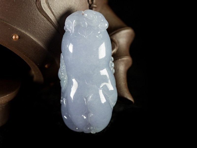 紫羅蘭色的佛手果,如意、蝙蝠在旁做點綴讓整件作品充滿了生命力。寓意吉祥如意,子嗣綿