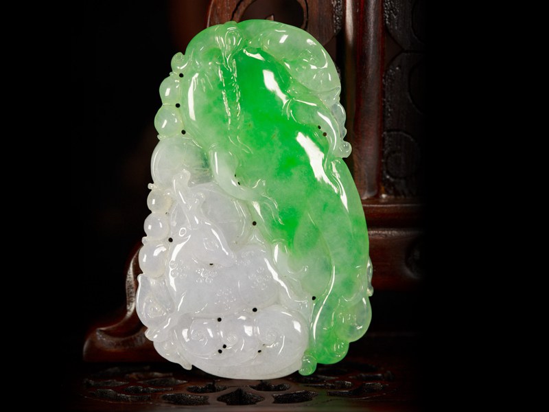 有種有色的人參,寓意人生;一串銅錢,寓意金錢;愜意趴臥的獾,寓意歡樂;旁邊矯健的梅花鹿在祥雲上奔跑。組成了一幅高官厚祿的畫面,人生如意,財富雙收。
